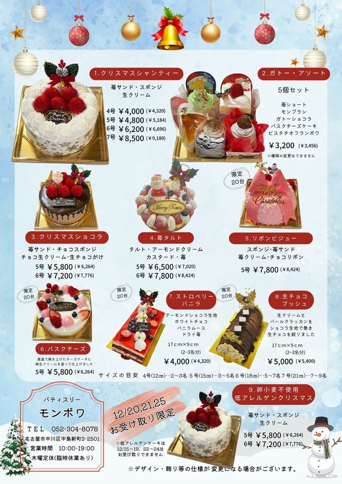 ※お受取日が11月9日以前の場合は、お受取当日にお支払いください。ただし、特注ケーキは前払いとなります。